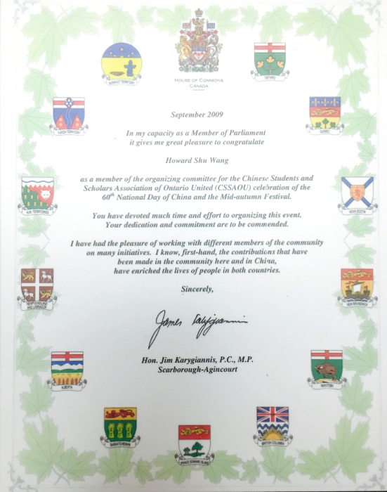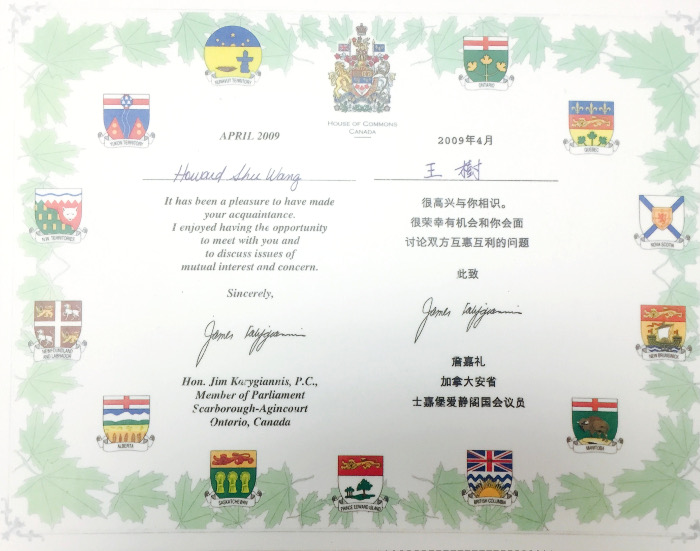 Howard with Minister of Citizenship, Immigration and International Trade – Hon Michael Chan